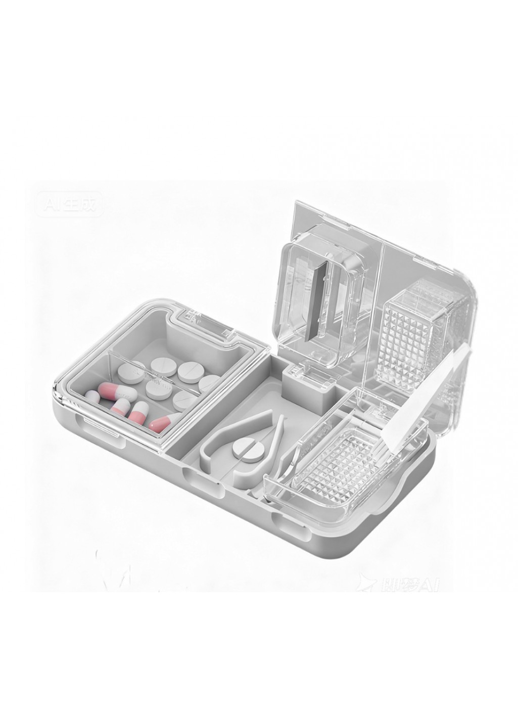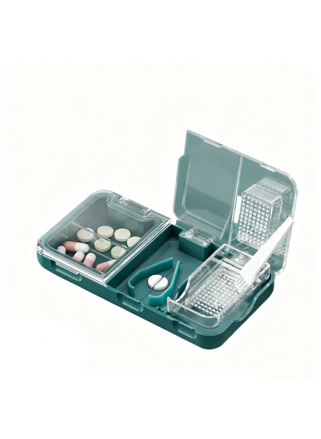Our 3-in-1 pill cutter offers cutting, crushing, and storage all in one compact, easy-to-use device. Ideal for arthritis sufferers, it accommodates both small and large pills to meet all your medication needs. Featuring an ultra-sharp stainless steel blade and a unique V-shaped slot, it ensures precise, accurate cuts, making it easy to split pills for controlled dosages. This hassle-free pill splitter also crushes pills into powder and provides storage for your medications. It comes with a free cleaning brush for easy maintenance. With three compartments, it's perfect for organizing vitamins and medications, and its compact design makes it travel-friendly. Built with high-quality materials for long-term use, this pill cutter is suitable for all ages, including the elderly, children, and pets like dogs and cats. Get organized and manage your medications effortlessly, wherever you go. Includes 1x 3-in-1 pill cutter and 1x cleaning brush.
