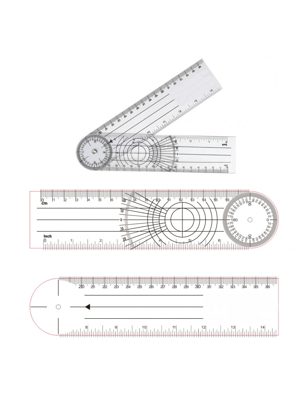 Made from durable plastic, this protractor ruler features a clear scale that ensures long-lasting use, resisting breakage and deformation. The protractor leg can rotate around the scale, allowing the approximately 7-inch arm to extend to about 12 inches, enabling precise and efficient angle measurements—ideal for drawing and other tasks. These clear plastic goniometers are highly practical, making them essential tools for artists, construction workers, designers, carpenters, architects, teachers, engineers, students, and anyone with drawing needs, offering significant convenience in both work and daily life.