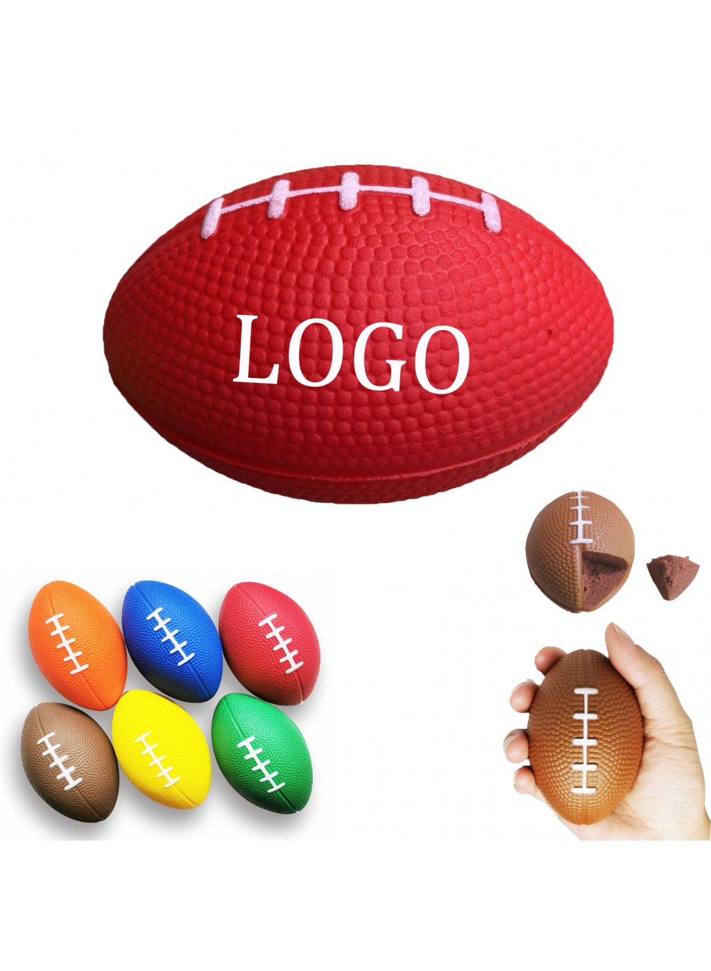 Introducing our Mini Football Sports Stress Ball, crafted from soft PU foam for a comfortable, squeezable texture that helps relieve tension and improve hand flexibility. This lightweight, durable polyurethane ball features a realistic football shape and provides effective stress and anxiety relief through repetitive squeezing. Compact and portable, it’s ideal for use at home, in the office, or on the go. The smooth, resilient surface ensures long-lasting use, while your custom logo imprint stands out beautifully for promotional impact. Measures 3.34" x 2.24", perfect for corporate giveaways, wellness programs, and trade show gifts.