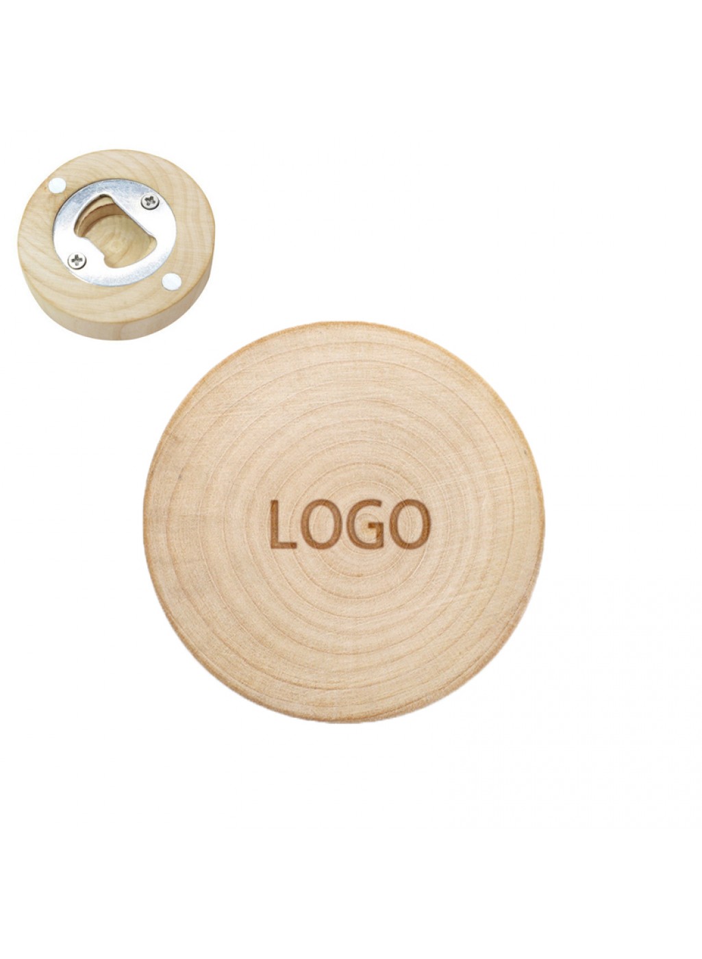 The wooden bottle opener combines functionality with style, featuring stainless steel construction and a strong magnet. Not only can it effortlessly open bottles, but it also serves as a decorative piece on refrigerator doors, perfect for attaching notes, photos, or calendars to any magnetic surface. The option to engrave your logo makes it an ideal gift for colleagues, family, and friends for occasions like birthdays, housewarmings, holidays, and anniversaries. Measuring 2.48" x 2.48" x 0.59", this bottle opener can also be customized with colorful printing for an eye-catching design. The price includes logo customization.